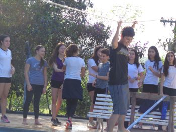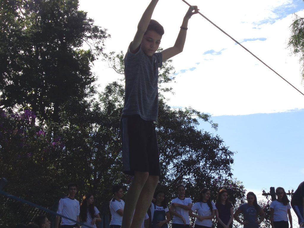 Aproveitando os espaços privilegiados que o Sítio Hipona nos oferece, os alunos do 9º ano do Ensino Fundamental realizaram no mês de maio o “Projeto Médias e Medidas” com o objetivo de determinar a velocidade média de cada participante em atividades como a corrida (60 metros) e a falsa baiana (10 metros). Os dados foram coletados (tempo gasto nas distâncias determinadas) e os cálculos serão realizados nas aulas de Matemática.